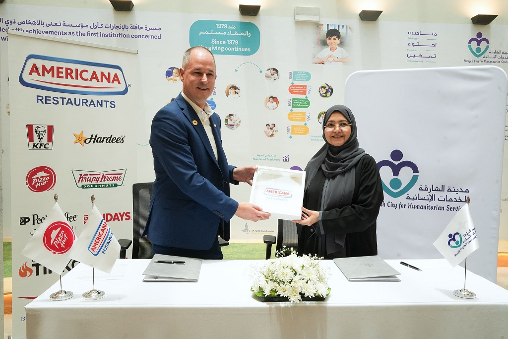 في مبادرة هي الأولى من نوعها على مستوى الدولة، وقّعت مدينة الشارقة للخدمات الإنسانية وشركة أمريكانا للمطاعم العالمية يوم الخميس 3 يوليو 2025 مذكرة تفاهم بهدف تعزيز التنسيق والتعاون والشراكة المُثمرة، وتوظيف مجموعةٍ من الأشخاص ذوي الإعاقة السمعية ضمن فروع “بيتزا هت” الجديدة التي سيتمّ افتتاحها داخل الدولة في إطار هذه الاتفاقية.